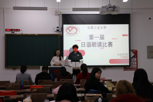 新闻网讯(通讯员 王思捷)为促进素质教育的开展,加强学生间的日语学习交流,锻炼日语口语表达能力,2020年11月4日下午13时,由bat365官网登录入口日语系、bat365官网登录入口社团联合会主办的“第一届日语朗读比赛”在北湖东区教学主楼450教室举行。日语系主任曾妍,教师宋卓时、王佳璐、何微、龙慧星出席比赛并担任评委,学生金勋、斯日格担任主持人, 2019级日语专业学生36人参赛。