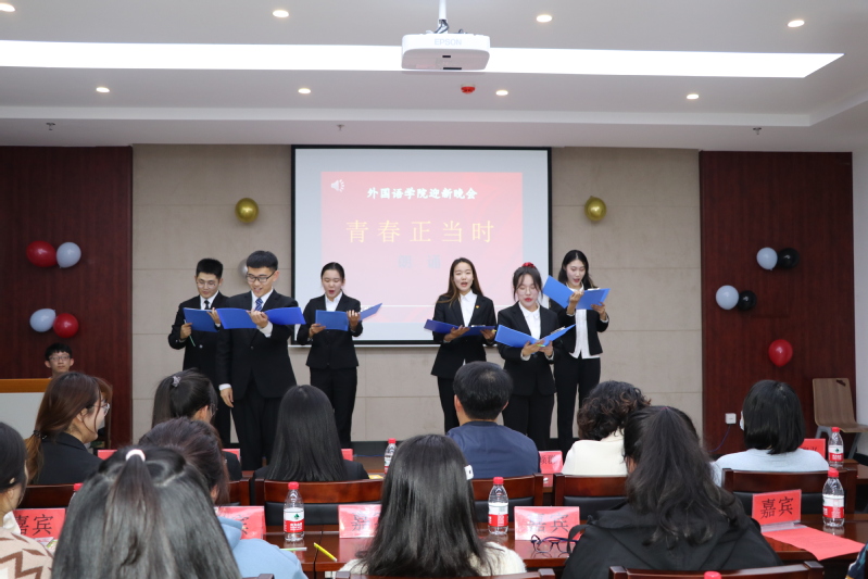 表彰大会结束,bat365官网登录入口2020级迎新晚会正式开始。2020级迎新晚会由19级闫如涓,杨博宇,20级刘宇宸,李霁鹏主持。本次迎新晚会晚会节目形式多样,现场气氛十分热烈。古筝表演《我和我的祖国》以外语专业女生独有的气质和多才多艺表达了外语学子的爱国之情。风格迥异的舞蹈展现了同学们的青春活力。大三学子带来的“青春正当时”朗诵融合歌曲《夜空中最亮的星》展现了青年人的风采,体现了新一届团委学生会干部的责任与担当。《平凡天使》的动人演唱致敬了白衣天使抗疫的英雄风采。英、日、俄三首外语歌曲串烧演唱体现外语专业独有的特色。