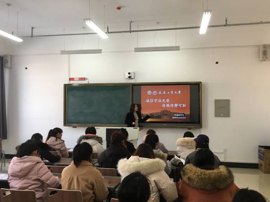 随后,2019级班长对《刑法修正案九》向同学们进行了现场解读,2019级团支书对《学生手册》节选部分向同学们进行了现场解读。