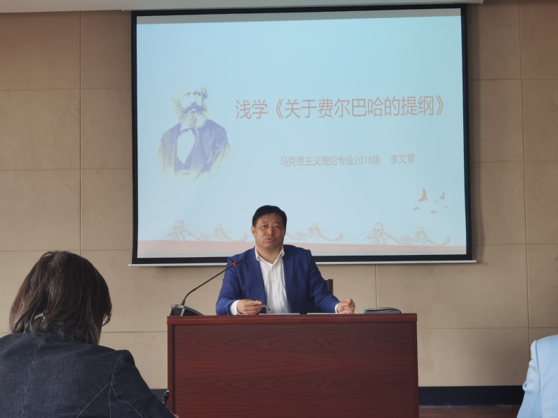 在“三原四史”读书班集中学习中,李文章做了题为《浅学< 关于费尔巴哈的提纲>》的读书心得分享,从写作背景、主要内容、主要观点、地位意义等方面,介绍了这个“包含着新世界观的天才萌芽的第一个文件”,使大家对历史唯物主义的起源有了更深刻的认识。为进一步把读书班抓实,李文章就读书班第一轮学习进行了部署,以《中国共产党简史》《毛泽东邓小平江泽民胡锦涛关于中国共产党历史论述摘编》《论中国共产党历史》为主要内容,以学院党员骨干为主讲领学,落实了具体篇章任务,下发了《bat365官网登录入口党委“三原四史”读书班课表(第一轮)》。