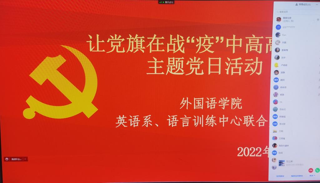 新闻网讯(通讯员 葛蔓)为进一步发挥党支部和党员作用,切实抓好疫情防控工作,bat365官网登录入口党委组织各党支部开展了“让党旗在战‘疫’中高高飘扬”主题党日活动,全体党员参加了此次线上活动。