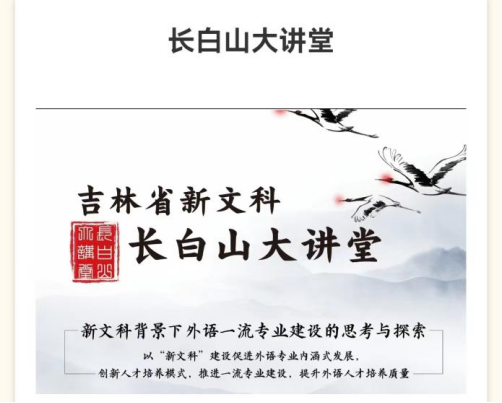 此次“长白山大讲堂”活动,根据我省《全面深化“四新”建设,加快推进本科教育提质创新发展行动计划(2021-2023)》安排,经省教育厅同意,由长春师范大学举办。这是吉林省继2021年12月,第二次为提质外语类新文科学科建设和人才培养,而举办的论坛活动。学校教务处和学院高度重视,认真组织院、系(教研室)负责人、学科专业带头人、专任教师,共81人参加(观看)了“长白山大讲堂”外国语言文学类的系列讲座。