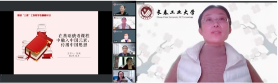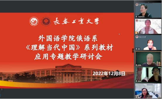 本网讯(通讯员 张微)为全面贯彻党的二十大精神和深入习近平总书记关于教育的重要论述,充分发挥外国语言优势,传播好中国声音,2022年12月8日,bat365官网登录入口俄语系《理解当代中国》系列教材教学研讨会以线上会议方式举行。《理解当代中国》系列教材由外语教学与研究出版社出版,涵盖英语、俄语、日语等9个外语语种及国际中文,帮助学生了解中国特色话语体系,提高向国际社会讲好中国故事的能力。