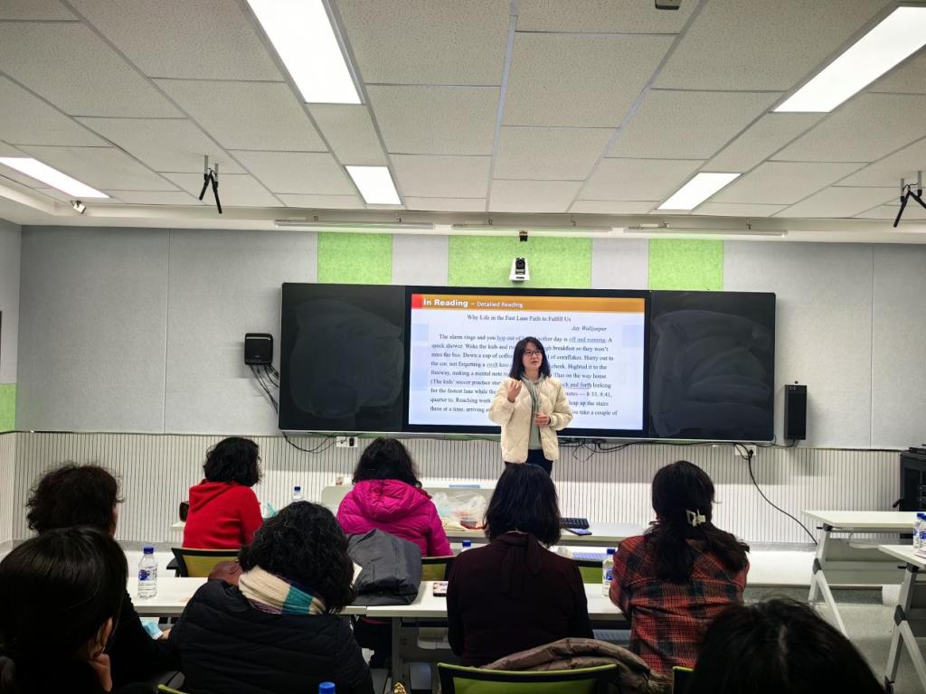 本网讯(通讯员 赵雪)为贯彻落实党的二十大和学校改革发展专题研讨会精神,进一步推动大学英语教学改革,助力我校教学高质量发展,2023年3月8日上午,公共外语教学部第一、第二教研室在我校南湖校区智慧教室开展了新学期大学英语集体备课教研活动,bat365官网登录入口院长王轶、公共外语教学部主任孙莉参加活动并观摩指导。活动通过现场说课及交流互动的形式,明确了新教材教学内容的重难点,探索了大学英语教学中课程思政及“以学生为中心”的多元化教学模式的实施路径。