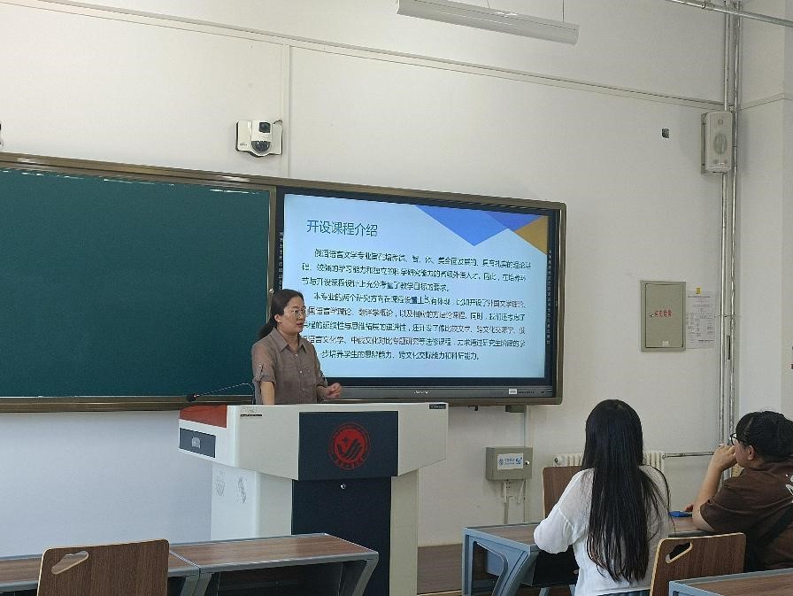 导师见面会后,副院长曾妍、英语系主任刘宇、俄语系张微老师分别给四个专业的研究生开展了“新生入学教育”,详细介绍了各专业的师资力量、培养方案、课程设置、社会实践活动、学生就业情况等,指导研究生明确学习目标,制定合理的个人培养计划。