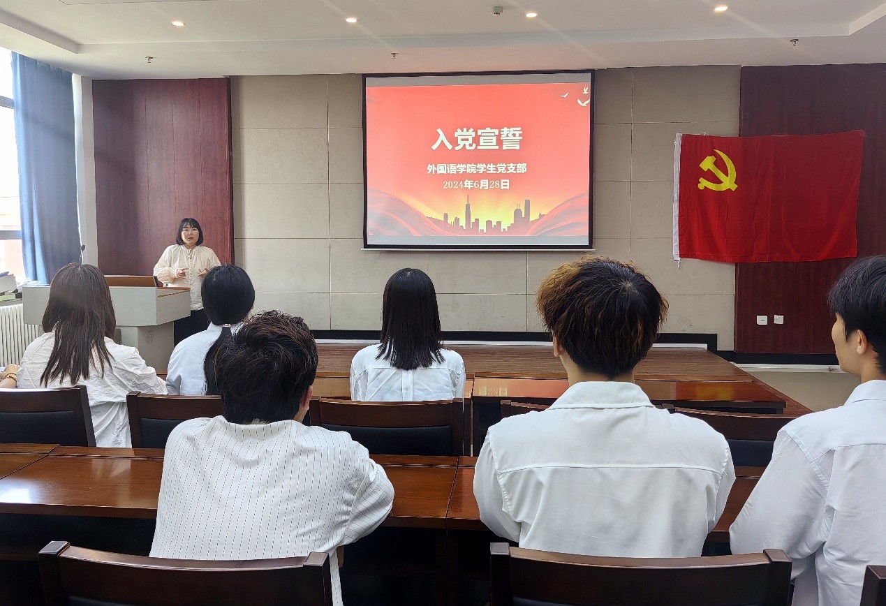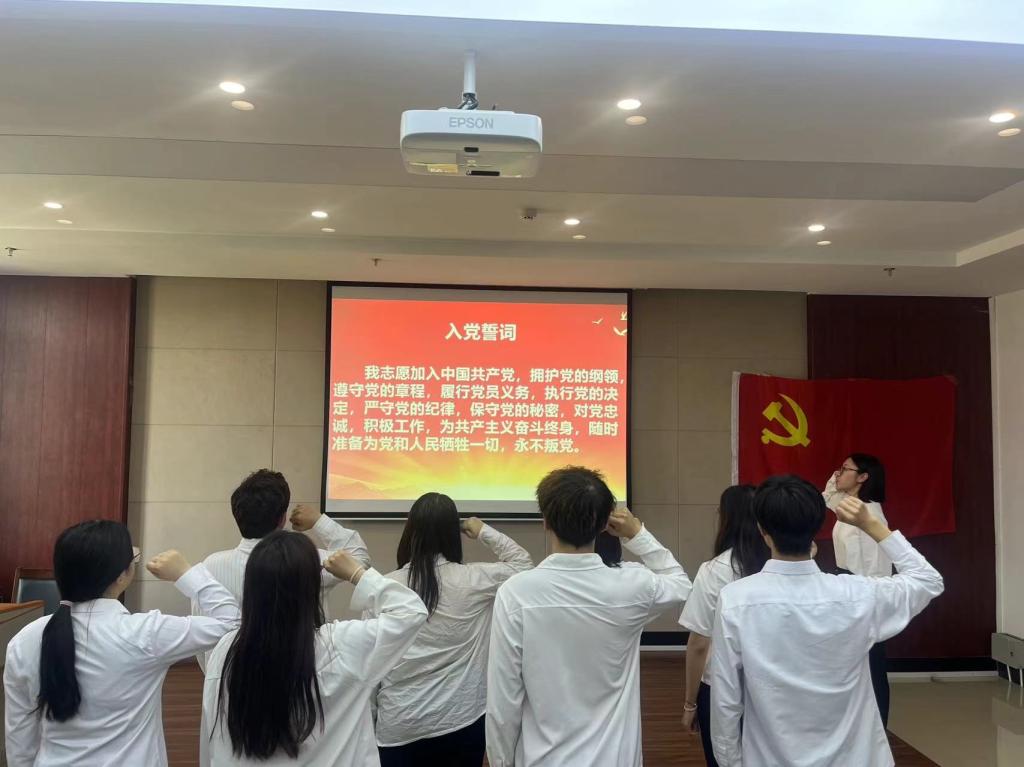 本网讯(通讯员 吴云坤)为庆祝中国共产党成立103周年,弘扬伟大建党精神,深入贯彻落实习近平新时代中国特色社会主义思想和党的二十大精神,进一步巩固和拓展主题教育成果,扎实开展党纪学习教育,bat365官网登录入口党委于6月28日组织新党员入党宣誓、老党员重温入党誓词主题党日活动。活动由学院学生党支部书记刘明慧主持,学生党支部党员参加了宣誓活动。