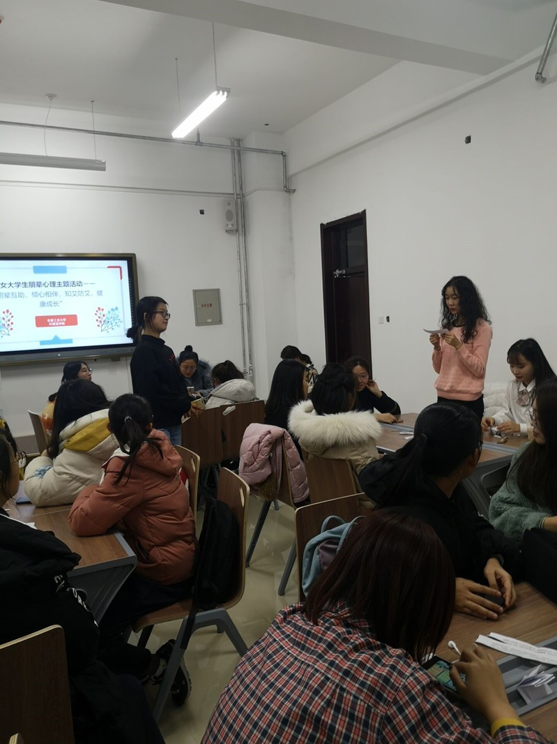 (通讯员:蒋文洋,孙润昊)2019年12月4日16:00至17:36,为了帮助女大学生更好地融入大学校园,切实解决在生活、学习中的各种问题,收获健康阳光的心理状态,同时响应12月1日世界艾滋病日的号召,更好地在大学生中宣传艾滋病知识与理念,bat365官网登录入口朋辈心理辅导站特在北湖东区主楼374、366室展开“朋辈互助,倾心相伴,知艾防艾,健康成长”主题女大学生朋辈心理辅导活动。该活动由赵君、王颖群、刘明慧老师指导,孙润昊等同学负责组织,18级19级女大学生同学积极参加。