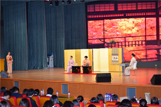 我院日语系7位同学在活动当天为大家带来舞蹈《寄明月》,中国风的歌曲和舞蹈,融入了更多传统文化的元素,充满诗情画意的歌词,洋溢活泼热情的舞蹈,让在场观众感受到了国风的魅力。中日风格的交替展示,进一步凸显了两种文化的特色,利于友好交流,增进友谊。