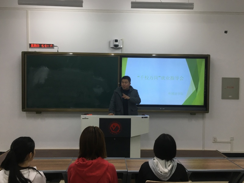 (通讯员:李雨晴)为落实团中央“共青团服务大学生就业工作片区会”精神,全面推进吉林共青团投身打赢脱贫攻坚战三年行动,呼吁面向建档立卡困难学生提供岗位对接,实现服务就业的主题,团委书记赵海涛老师为对bat365官网登录入口建档立卡的贫困同学给予关怀和帮助,在11月7日下午2点半于教学主楼433教室召开了“千校万岗”就业指导会。
